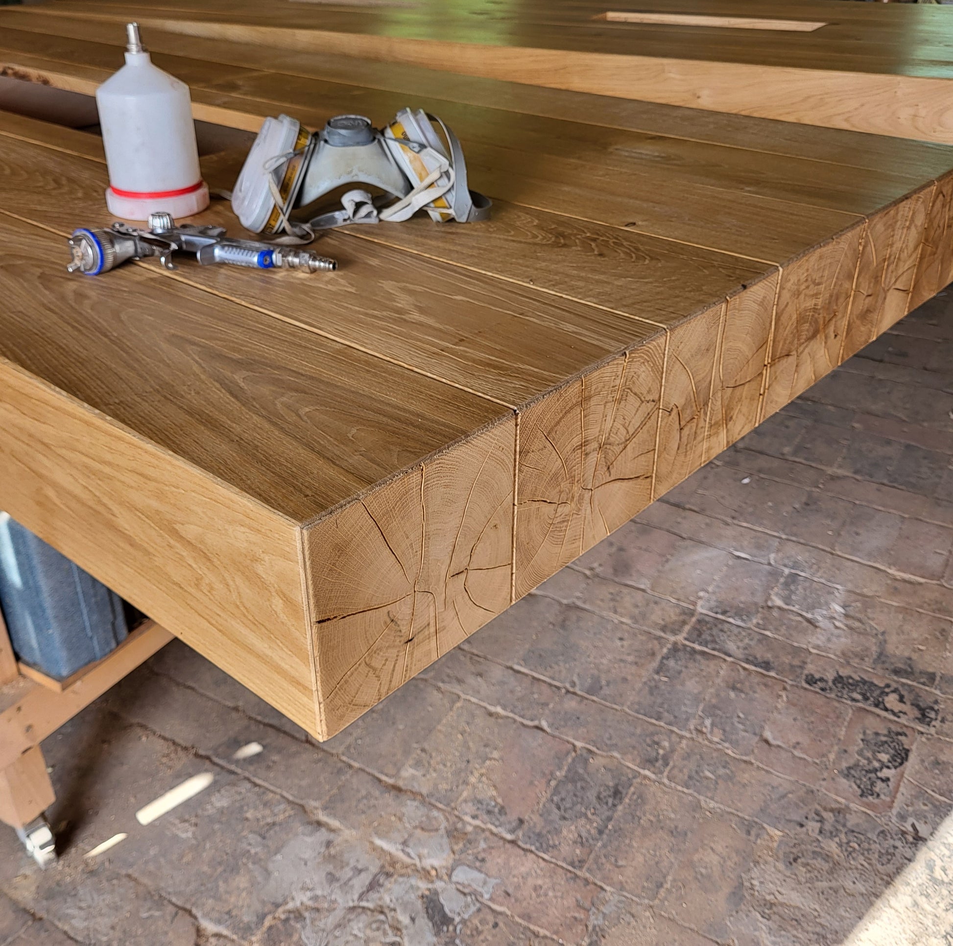Das Eichenholz ist in drei Schichten klar lackiert.