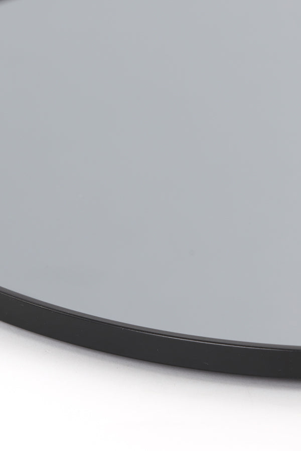 Enhance your space with the unique smoke finish of the Espejo mirror. Its grey-tinted glass and metal frame exude luxury and modernity. Hang it securely or lean it stylishly. Pair with mirrors of varying sizes for a grand effect. This modern, round mirror in black plastic measures 50 cm in diameter.