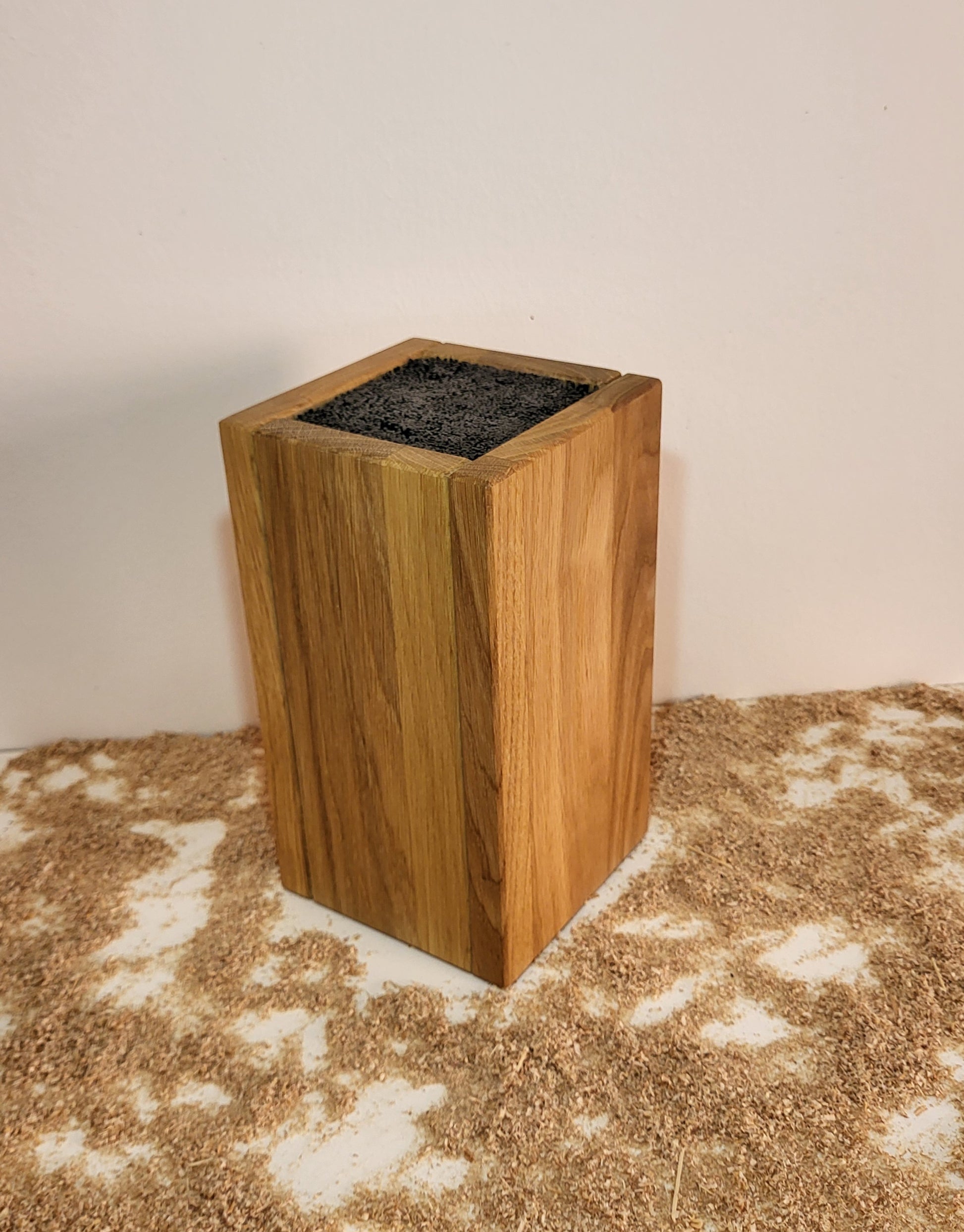 Jeder Messerblock ist einzigartig! Da sie handgemacht und das Material handverlesen ist, wird die Aufmerksamkeit auf die individuellen Eigenschaften der jeweiligen Hölzer gelenkt.