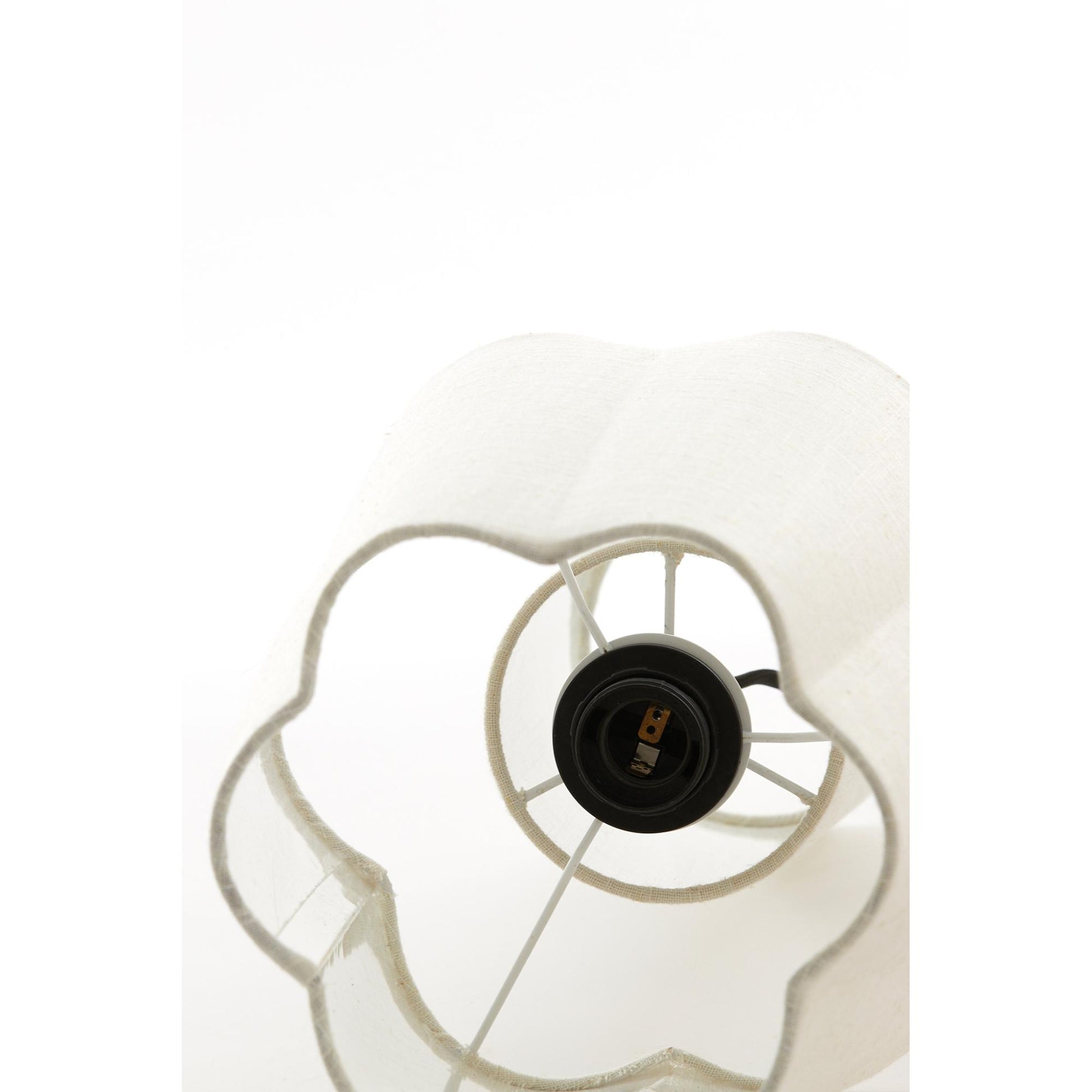 Moderne Tischleuchte mit einem natürlichen Leinenschirm in Blumenform. Die Musaby Tischleuchte besticht durch ihre einzigartige Stoffbasis und organische Blumenrundungen. Das Stahlgestell sorgt für Stabilität und ein sanftes Licht. Ideal für Schreibtisch oder Beistelltisch.